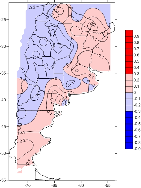 Campo de correlación entre la precipitación de "DEF" y el índice DOI